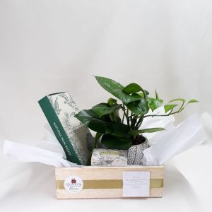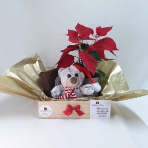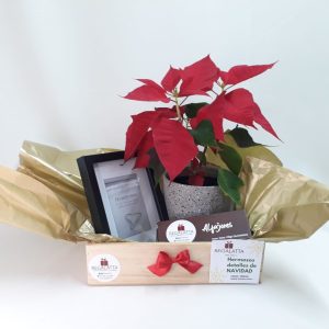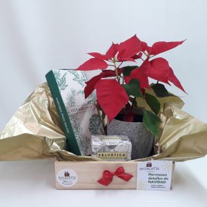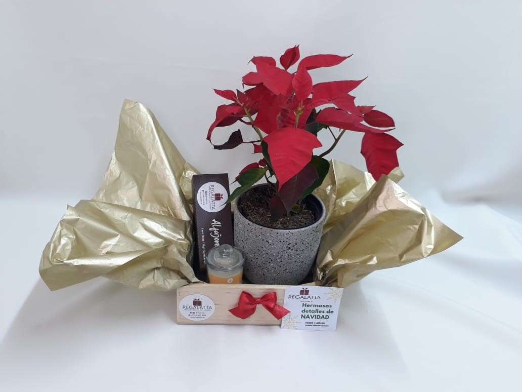 Hermoso regalo de navidad en Caja de madera, papel seda, moño de tela, tarjeta personalizada, planta de navidad, matera en cerámica, alfajores x 5 unid, vela en vaso de vidrio y tapa, valor del regalo no incluye el envío.