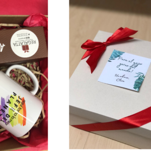 Hermoso regalito en caja de kraft con cinta y tarjeta, Caja x9 alfajores y portarretrato pequeño para mesa con mensaje o frases positivas, mas envío.