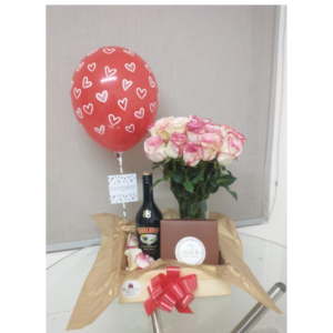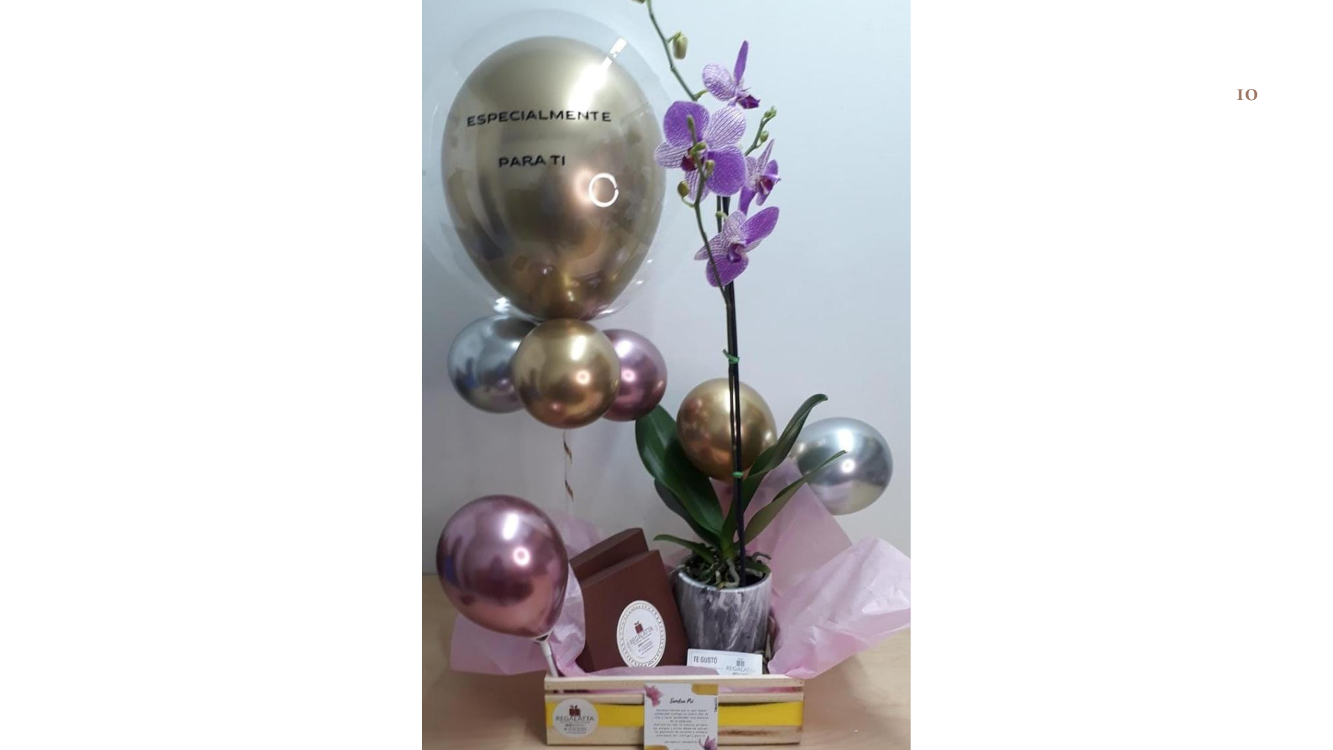 Hermosa orquídea en matera de cerámica premium, acompañada de 9 deliciosos alfajores y 9 mini brownies artesanales, decorados con globos premium en una presentación elegante e inspiradora en caja de madera .