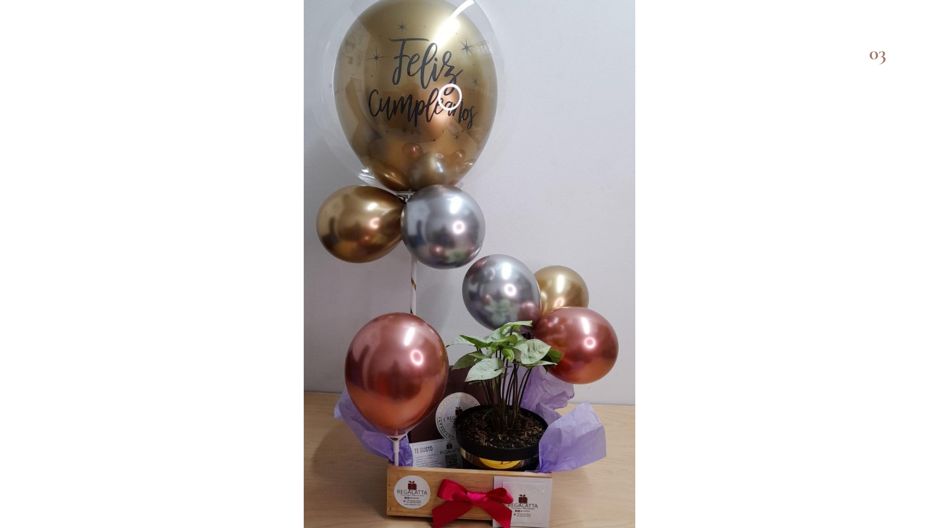 Hermosos Globos Premium con Planta pequeña en matera plástica y Caja x 9 Alfajores o Mini Brownies.