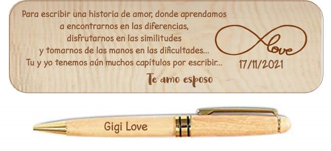Lapicero y estuche en madera, 100% personalizados en el mensaje y dibujo. El lapicero lleva el nombre o alguna frase más envío.