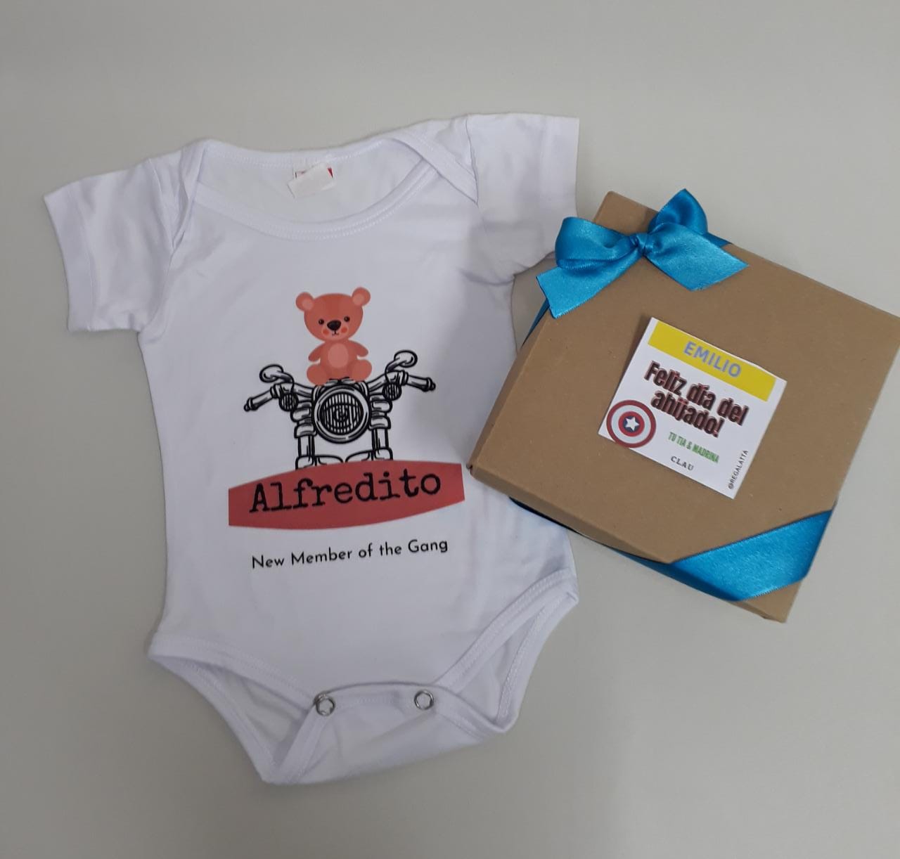 Mameluco personalizado 100% algodón, empacado en hermosa caja con moño y tarjeta personalizada, mas envió.