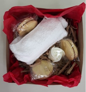 Hermoso regalito en caja kraft de 10 x 10 cm con una toalla facial, alajores x 3 unidades, jabón en forma de rosa, tarjeta personalizada y cinta tela, el precio del regalito no incluye el envío.