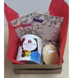 Hermosa taza elaborada con el diseño que elijas, deliciosos Alfajores X5, acompañados de 3 dripbags o infusiones aromáticas del amazonas.